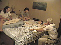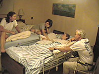 Today a note beside the front doorbell asks people to knock gently instead of ringing. A small sign requests that visitors leave their shoes in the front hall. Fresh flowers salute from the kitchen counter and smile from the table near Micki's bed. Whispers take over as you near our bedroom. Micki now spends much of each day sleeping. The mid May decision to work with Hospice stripped away most remaining defenses. We acknowledged - out loud, if you will - that Micki's death is on the near horizon. A walker, a shower chair, and a wheelchair arrived - just in case. A team of gentle pros visited to assess every aspect of Micki's care. New pain meds artfully displaced Micki's occasional nausea and furrowed brow - at last. An early July trip to New England seemed possible. We went to Connecticut so Micki could sing the closing blessing at a beloved uncle's memorial service in Salem. Dozens of Bingham relatives stopped by to say hello/good-bye. A one night outing to the Northfield family conference ended with the choir assembled beneath Micki's window singing, Eagles' Wings.Decades of friendships condensed into a song for Micki, every face awash. A nighttime fall on a carpet edge. A hospital bed with rails appears in our bedroom. All the Navaho scatter rugs vanish into a closet. Open discussion of details about a Gainesville memorial service. Micki is clear. "That's your responsibility. The service is for the living." The months have burnished shrill impossibilities into hard won acceptance. Over The Bridge seems tranquil. We have all talked openly with Micki about her dying. A prime concern remains surrogate grandmothers for Jody and Blake's future offspring. Jody and Micki discuss possibilities. Grandchildren nurture stays a priority, "Bear, I want you to marry again, BUT you have to find someone who can sing to our grandchildren." Jody and Blake often feed Micki. The tenderness and encouragement of her feeding them - just yesterday - lovingly returned. We three sing to Micki the lullabies she and I sang to the kids, "Sleep My Child" and "The Deerfield Evensong." Meals continue to arrive at the front door. How do folks know when no one in the house feels like cooking? Letters overflow the antique salad bowl in the dining room and nose the brim of one of Jane Esselstyn's giant hand-woven baskets. The awesome reach of Blake's Website touches lives around the planet. Spontaneous love and outreach flow from people we've never known. We are blessed by a loving network of care and support. From a Smith College classmate and singing buddy of Micki's - Dearest Micki,From a Yale classmate and friend of forty years - Dear Erik:On the January late afternoon when Micki and I heard the first solid medical picture of what the future might hold, we left the Neurology Department in churning silence. Our take out dinners at a neighborhood bakery defiantly included two splits of French champagne. Nestled at home, trying to comprehend what lay ahead, we downed one bottle in toasts to the masterpiece we would create in whatever time we had left together. We agreed to toast with the second bottle when we knew we had indeed fashioned a masterpiece of the situation we had been handed. For fifteen years, following my own cancer recovery, we led workshops about dealing with the emotions around life-threatening illness. We had counseled couples and families about the value of being open with feelings. We had experienced the parched loneliness of unshared fears and concerns. To keep the couple connection wet and green the scares must be shared - not fixed, just shared. We had lived it, learned, and passed along our hard won insights to thousands with panache and humor. Neither of us ever imagined we would be asked to live through the drama once again. This evening I popped the cork on the second bottle of champagne. Gathered around Micki's bed with me were Jody, Blake, and Blake's girlfriend, Meredith. We toasted the masterpiece that our family had lived out in the last eight months. Catching Micki's eye over the clinking crystal, there sparkled a knowing gleam, "We did it." The summer marches on. Thank you for the ongoing prayers and caring that bless this family every day.